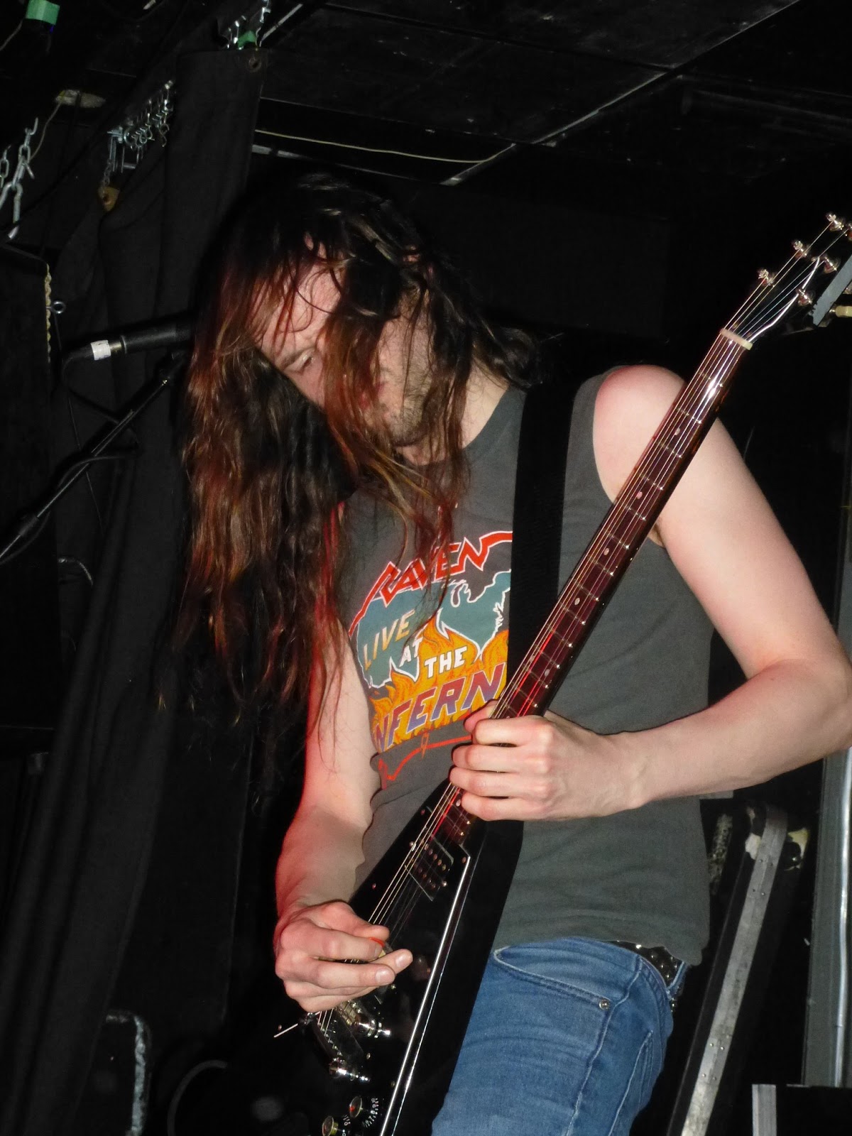 off his toe sideways and smack into the face of someone in the front of the audience! After a short pause for a broken bass pedal, the guitarist took the time to apologise to the person who was the recipient of the beer can in the face and they were under way again. To me it’s obvious that Metallica was a big influence on this band as they smashed through their set list including tracks such as Nitebreaker, Summoned To Succumb, Burning Fortune and Conjure The Mass. While they have some good head banging riffs and the crowd was surely enjoying it, with a small mosh pit even breaking out, they were not really my style. They ended their set and the guitarist actually passed his guitar out into the crowd and I watched closely as it crowd surfed around a few minutes before returning to him on the stage.