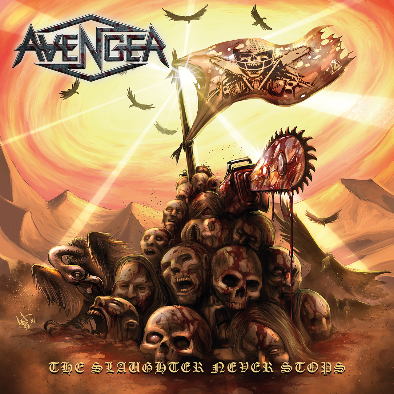 AVENGER‘s first two albums, Blood Sports (from 1984), and Killer Elite (from 1985), were recently reissued on CD via Dissonance Productions, and on LP via Back On Black Records. The reissues are packed with previously unreleased and rare bonus tracks, and booklets with previously unseen photos. The series is now continued: AVENGER‘s comeback album, The Slaughter Never Stops (originally released in 2014, and available as limited edition CD only), will be available on CD, and for the first time ever on LP, with a brand new cover artwork painted by Roberto Toderico (TYGERS OF PAN TANG, QUARTZ, MYTHRA). The CD version will hit the streets on September 21 – release date of the LP reissue will be announced shortly.