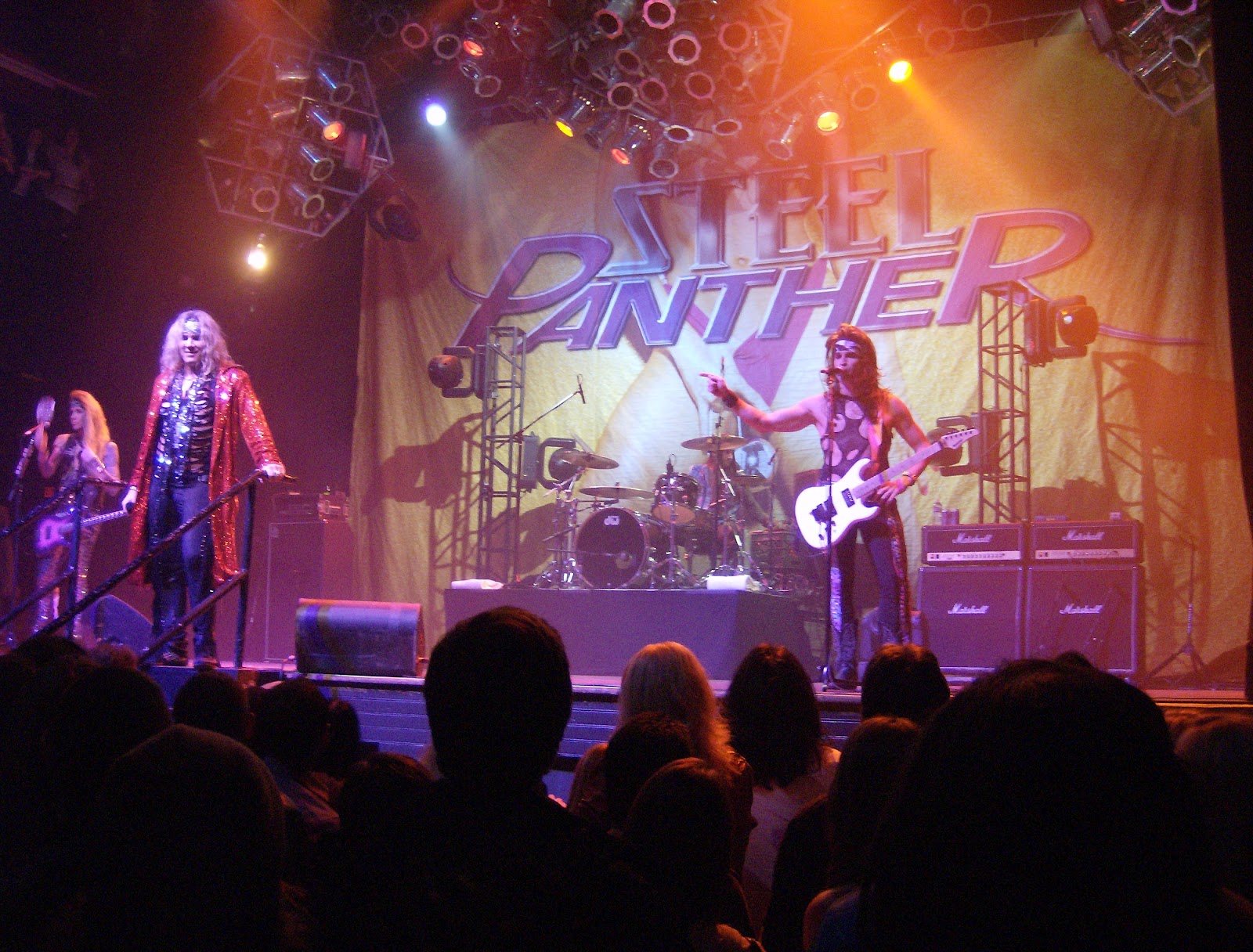 Well now on to Steel Panther. If you’ve never been to a Panther show, you’re in for a lewd and delightful treat. Having had the opportunity to catch them previously at House of Blues in Las Vegas, I knew what to expect. I was a bit surprised to find the venue fairly busy as the doors opened; I did not think that the Panther had a following way up here in the Great White North. Tons of the crowd were sporting Panther shirts and adorned with headbands and 80’s style clothing. Their merchandise table had a beehive of activity around it and the product seemed to be selling like hotcakes.