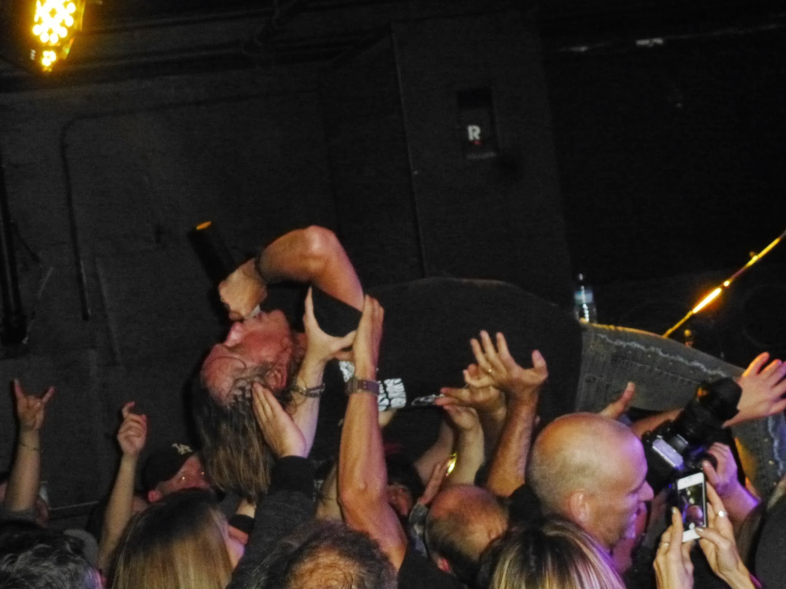 Wally and The Meister met up outside the club around 7:30pm, admiring the looks from theoutside. The line up to enter was already forming across the front of the building for the scheduled 8pm door time. We entered the club and the smell of fresh paint filled our nostrils as we were excited to check out this new playground. Securing some frosty adult beverages, we found a great perch to catch the show. As neither of us was feeling in tip top condition with brewing colds, we forewent our usual concert viewing area of stage front leaning and stationed at a railing by the raised bar area. A great view of the whole stage, and close for beverage refuelling as well!