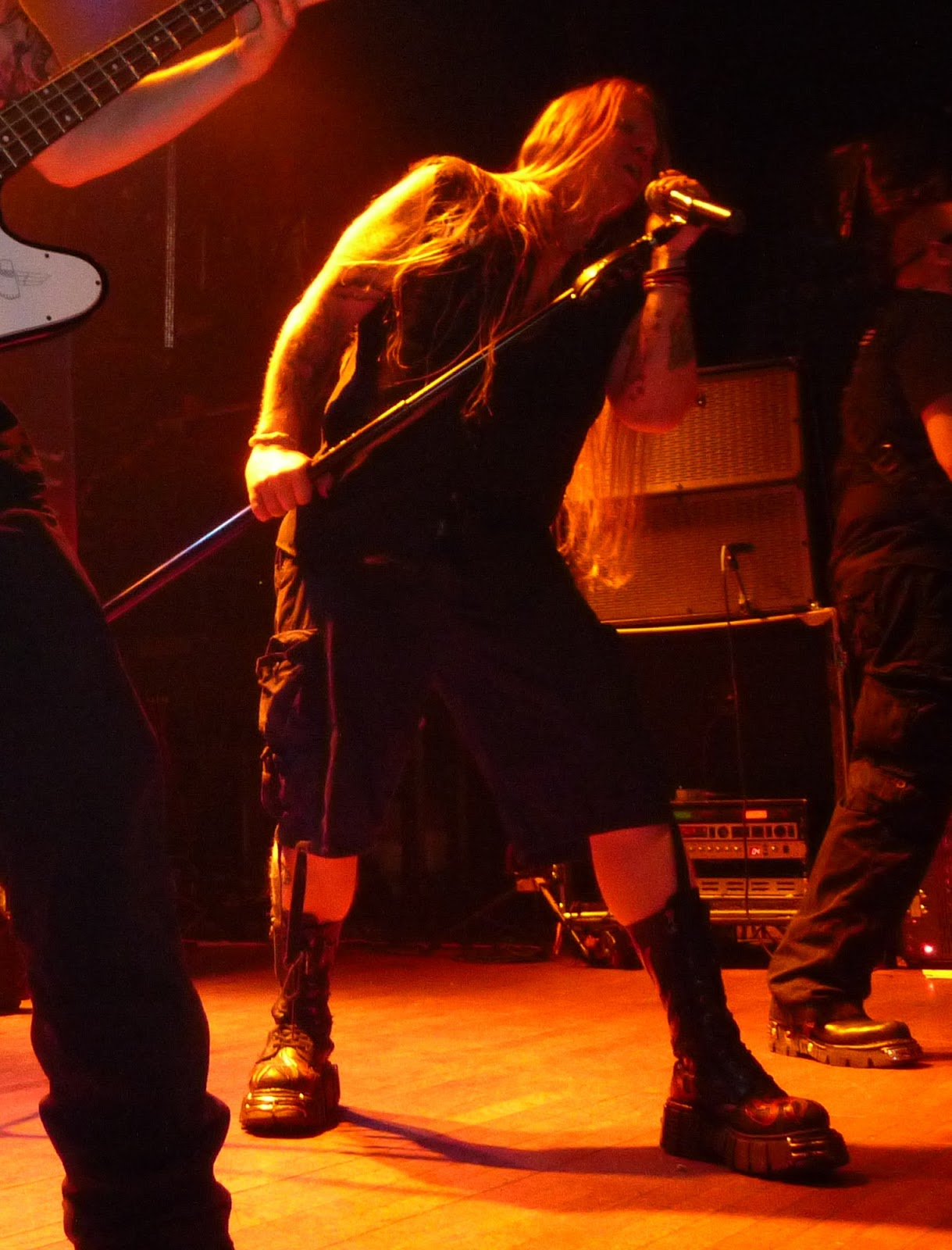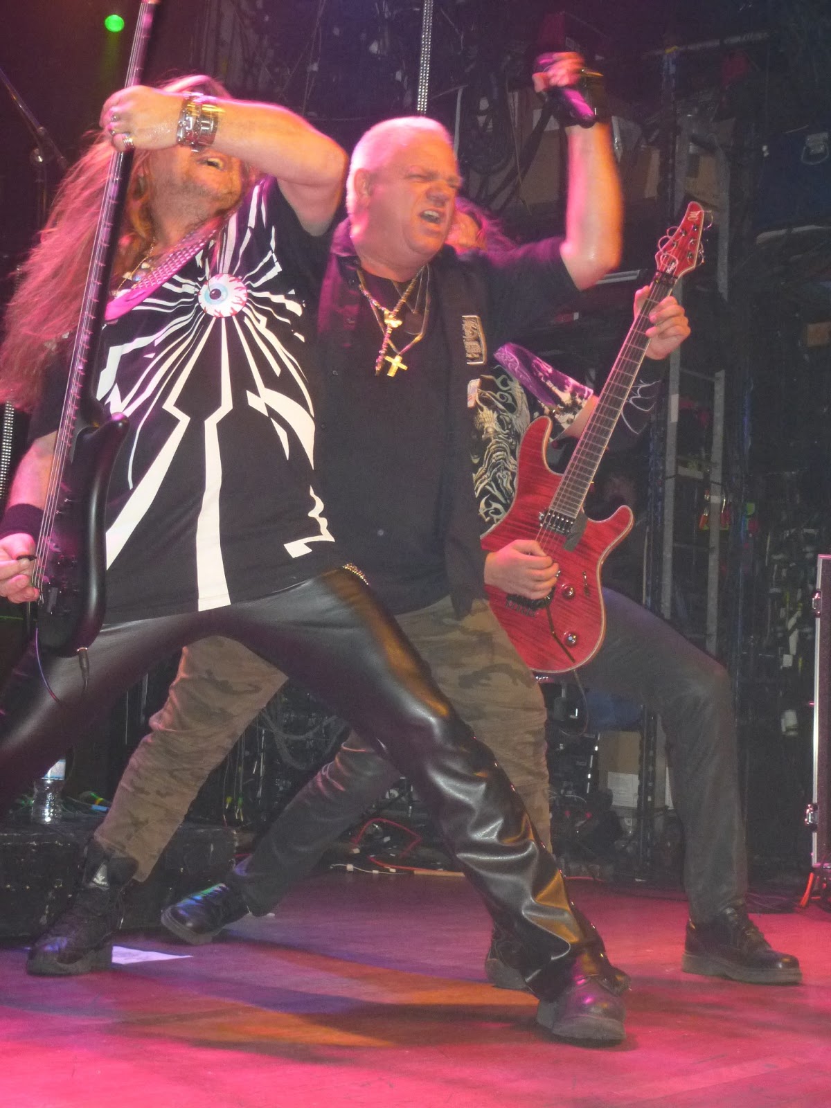 U.D.O. followed his band on stage during a recorded intro a little before 10pm, charging into Rev-Raptor, the title track from his 2011 record. Thunderball, which I was not overly familiar with came next with They want War from U.D.O.’s first solo record close on it’s heels. I noticed that the band, two guitarists and a bass player all backed away from the front of the stage towards the drum riser during the verses of the songs and came forward to perform backing vocal duties during the choruses. U.D.O. himself would also take to the rear of the stage during musical breaks, standing with fist clenched around his microphone, eyes closed tightly just hearing and more than that, feeling the music. Metal Machine from the forthcoming record, Steelhammer, due to drop in May was next and then back to Rev-Raptor for Leatherhead. U.D.O. and his band were sounding awesome and this was what a rock & roll show should be, with very little talking, no crowd gimmicks and just straight playing, song after song, kicking your ass and this was