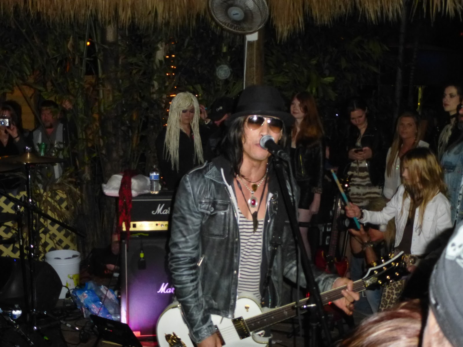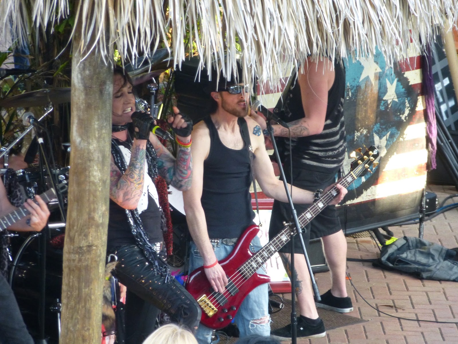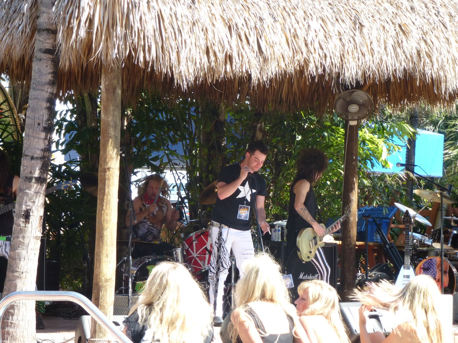 Liberty Lush was next up and they stormed the tiki hut with a great energy. I had searched them out on the internet prior to starting my journey and was able to listen to some song samplers through their website. Liberty Lush is currently on tour with L.A. Guns. They had some cheerleaders that had been noticed by my new friends and I earlier on, but now they were right down in front. We dubbed then “Team USA” as they were all decked out in US flag bikini’s that had Liberty Lush printed on the posterior, not that I was looking! By this point the breeze had started to get up and it was actually quite chilly. Damn, that’s two nights in a row that this hardened Canadian is cold in Florida, what’s going on here? One of my newly made friends hotel room was near by and they procured a sweater to lend me, life savers!