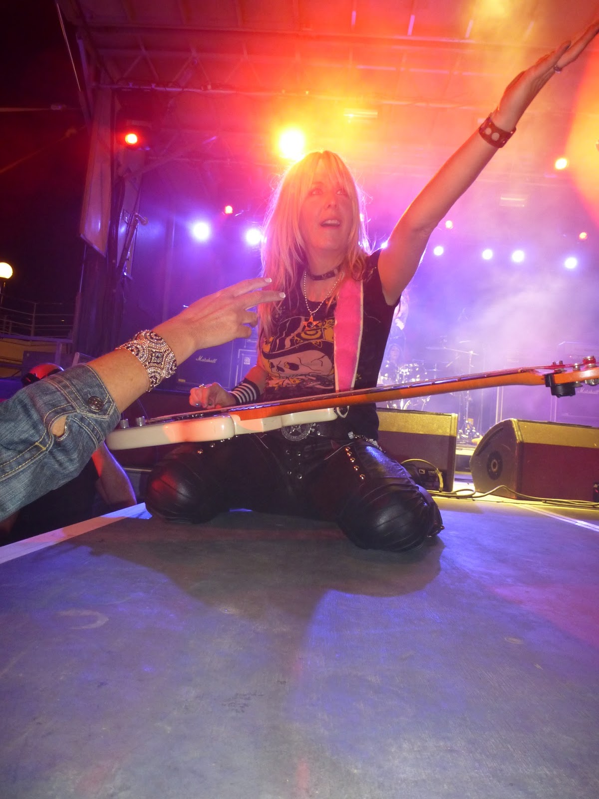 way onto the roster. Cryin’ , I Want You To Rock Me (which contained a little crowd incitement in themiddle and portions of We Will Rock You and Pour Some Sugar On Me) and Streets In Paradise led us to Share taking vocals over again for the cover of Neil Young’s Keep On Rockin’ In The Free World. Love Is A Killer, Never Say Never and Wrecking Ball showed off Gina’s absolutely ballistic guitar skills, although the ladies did look a little tired tonight, it was near 2am after all, they were rocking hard again. The girls finished up with Mas Tequilla and Edge Of A Broken Heart and I got a hand slap from Janet and a handshake from Gina as they appreciated their audience. I fully admit that these ladies finished me off tonight and I couldn’t help but think Lita who?