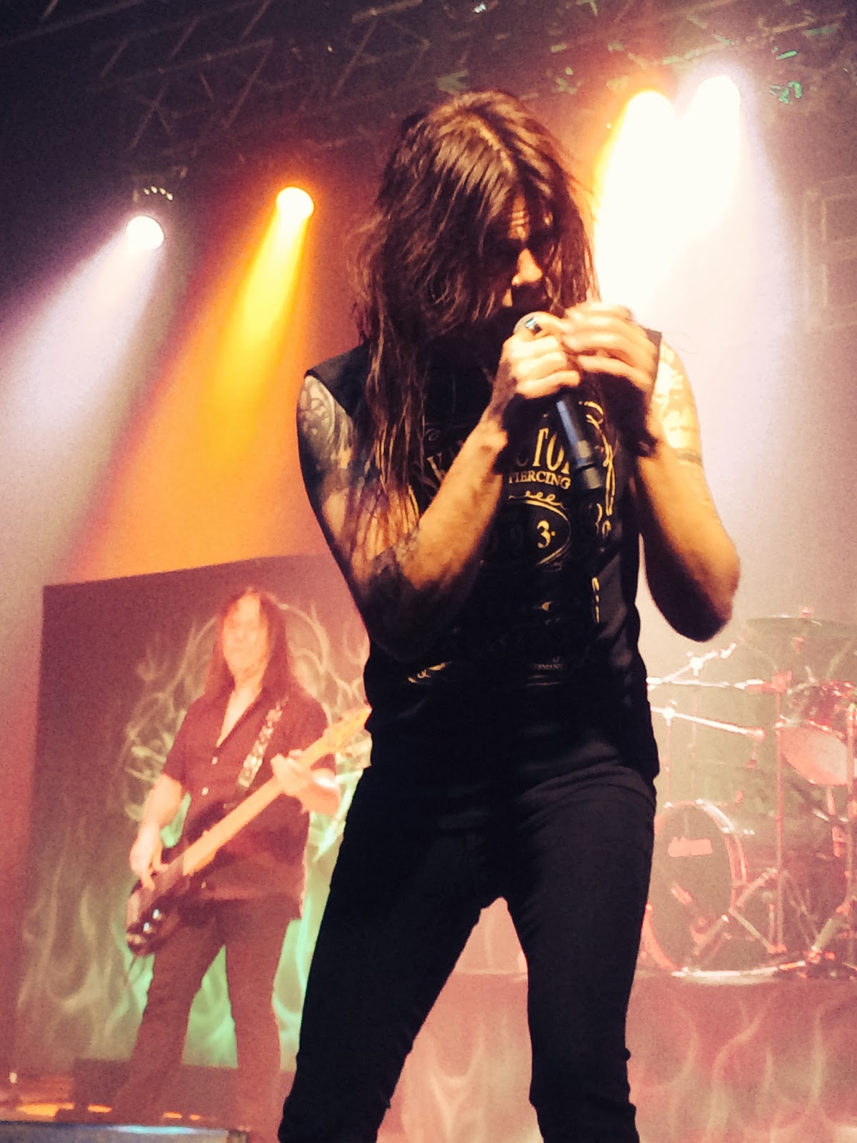We missed the first opening act but my new friend Simon said they were a bit screamy for the bill and we know how much I like ‘screamy’ so that was just fine by me. The second band was a local group named Awake by Design. Much more suited to this bill and I quite liked them. Four out of six had fantastic hair and weren’t afraid to use it!! The singer was a bit of an egomaniac but they were a good solid band and I’ll probably look them up sometime.