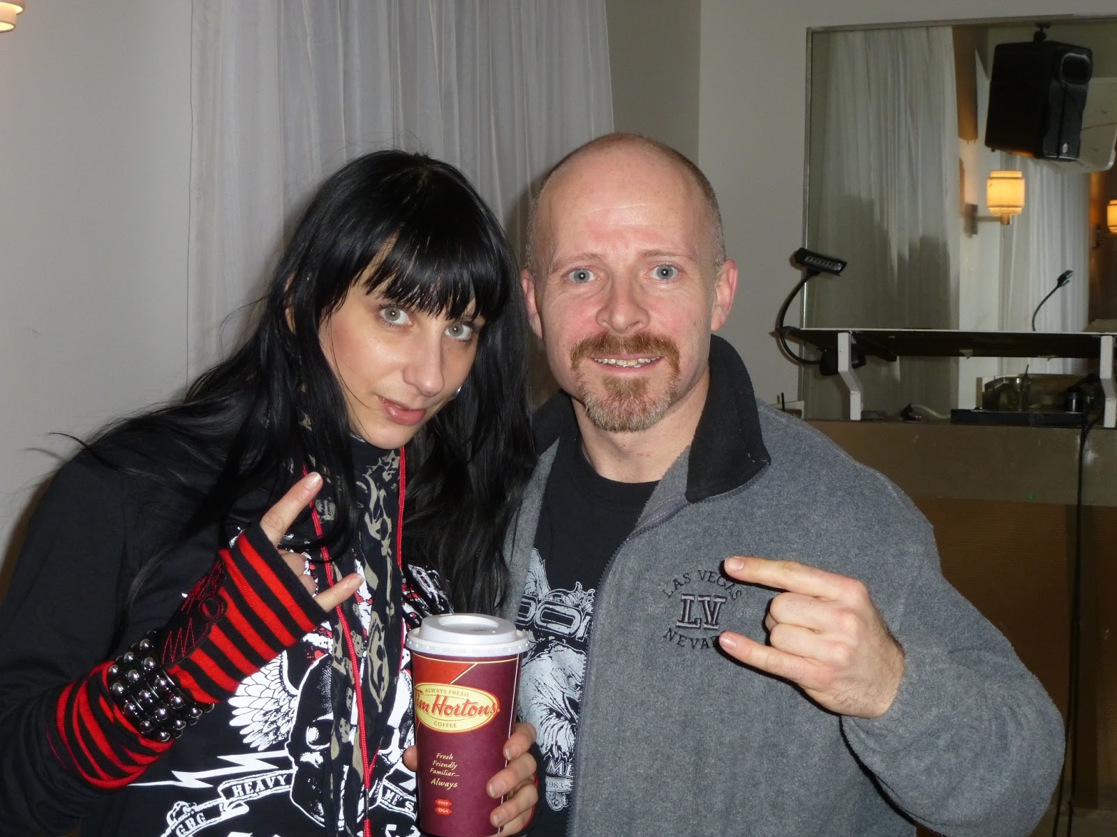 Liv: Yeah, it’s been good. I mean like we played four shows, this is the fifth, one day off, but it’s been really good so far. We had some….I mean there are always like troubles everywhere, but not around the shows it’s been really good, but then like (makes “ugh” noise) the stuff around with the travelling and stuff (we did notice that the Sister Sin tour bus had a big yellow parking ticket on the front window earlier) and I mean with Doro being sick and Jimmy being sick and stuff like that. The shows have been really good.