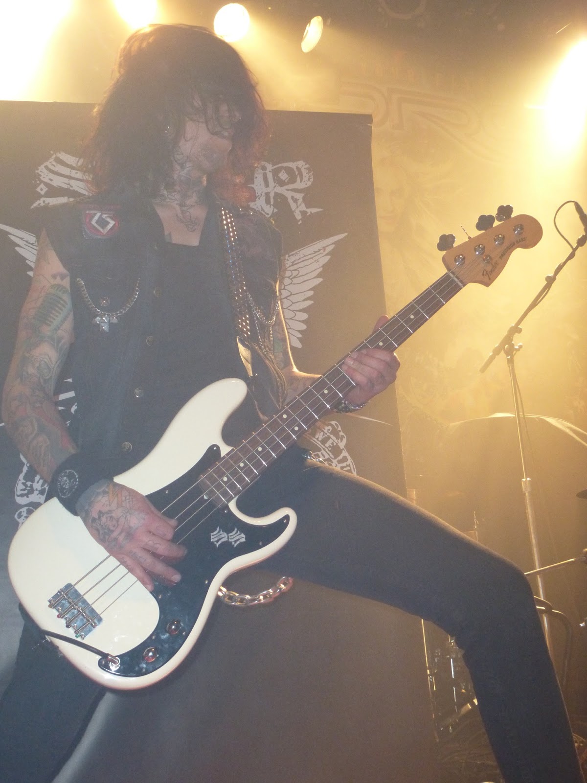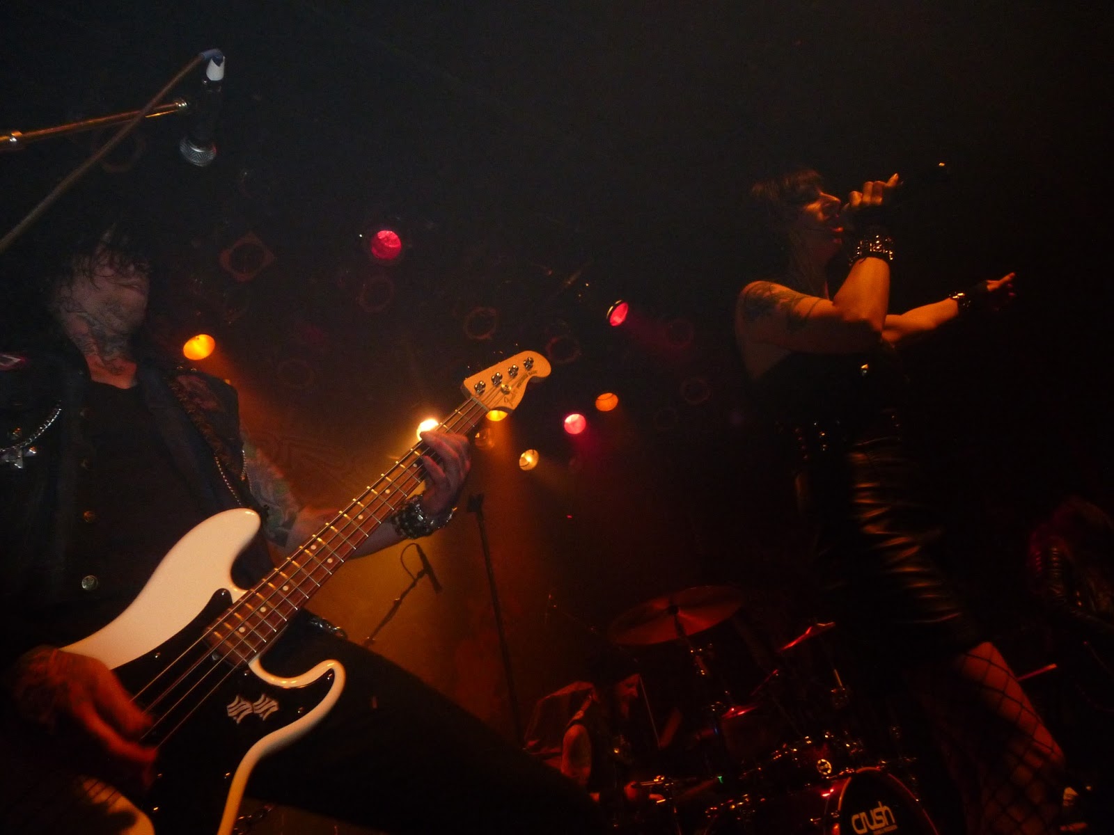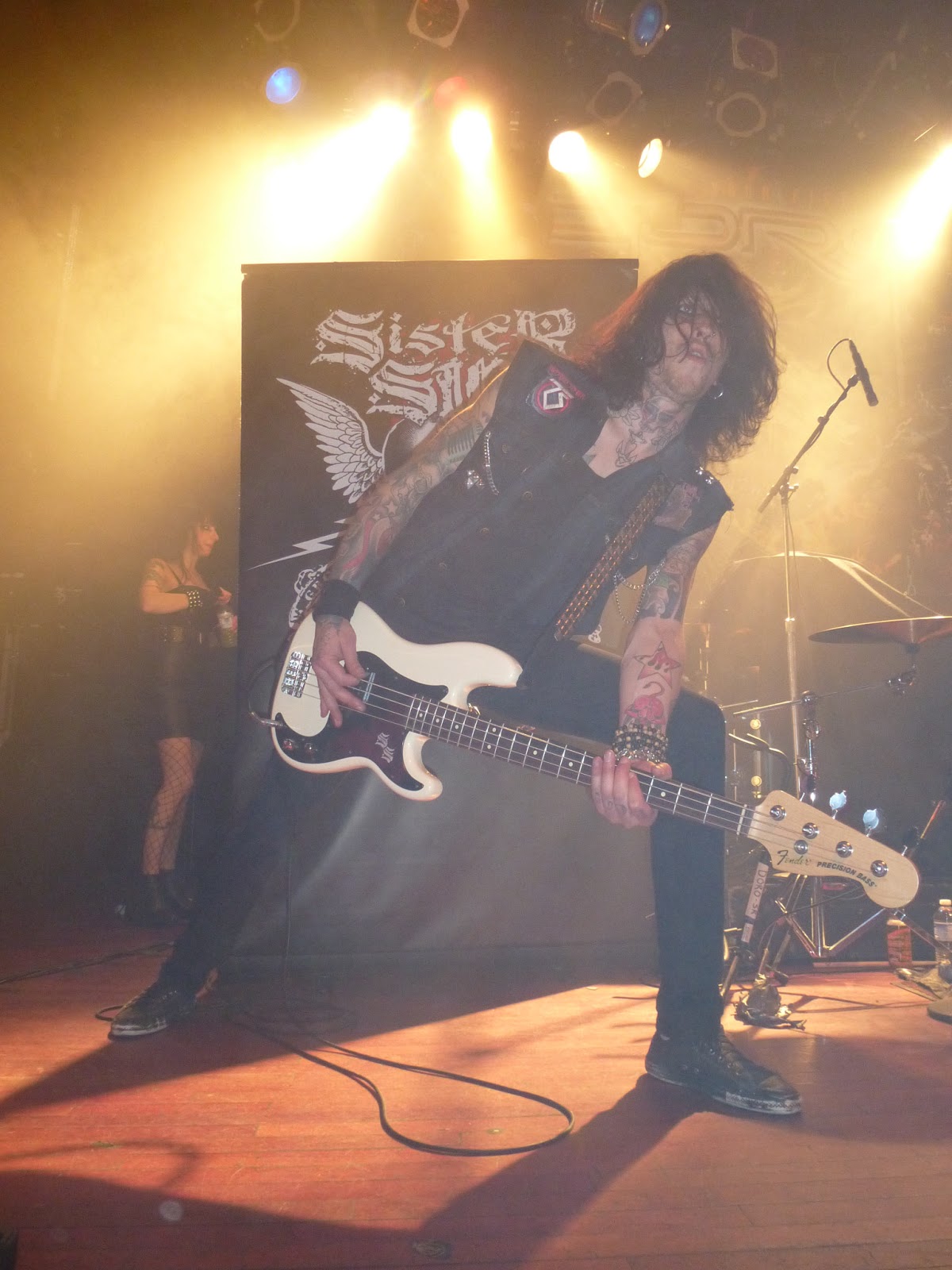 Liv: I moved to Gothenburg and I lived for one year in Gothenburg in like 2002 and I didn’t have a band back then, so I put in an ad, this….uuuuhhhh during that time you put an ad in the paper not on the internet so….I put an ad in the paper, like a musicians paper and someone like answer me and it was not our guitarist now it was earlier guitarist, former guitarist and he told me “Hey I want you to audition for my band, but, just so you know, I’m the only one who wants a female ’cause the other guys want a male” and they wanted a whole like Motley Crue Vince Neil type of guy, that kind so he’s like “but I convince them that you can try out one female, but just so you know they don’t want a girl.” But I tried out and I think we did like Live Wire or something to just try it out and then they hire me on the spot! So I kicked all the other guys ass (laughing). So it was pretty fun and back then it was only Dave, the drummer, in the band with another bass player and another guitarist. Jimmy joined in 2004 I think, so we kind of say that 2004 is when we real started as Sister Sin ’cause Jimmy got in the band and we start to develop the music that we wanted to play. We were so much more like sleazy, cheesy, greasy before that like (makes “ugh” noise), I don’t like that music. DBG: And now you have a different bass player from the original? Liv: Yeah, exactly. We have bad luck with bass players so we actually been through three bass players. So they all kind of just jumped off the band, or like they quit, just before tours (laughs), stuff like that. But this guy is…actually we’re happy that they did because this one suits the band.