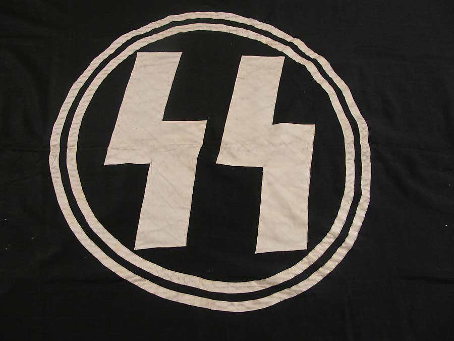 Of course Paul Stanley’s participation in said photo shoot makes it appear less than nefarious, considering the fact that he is of course Jewish. Obviously the guys were just being goofy, but it was certainly in poor taste. Gene Simmons tells a story about Ace Frehley knocking at his hotel room door dressed in a Nazi uniform and giving him a Nazi salute. Perhaps (perhaps!?) Ace was drunk, perhaps it was the same night the above photo was taken, or close to it, but the fact that Gene’s mother was a holocaust survivor who saw most of her family wiped out makes Ace look like an idiot or worse. Taking all of this into consideration, and knowing that it was indeed Ace who first envisioned the lightning bolt double S in the KISS logo, and of course knowing that lightning bolts were also the inspiration for the double S on the Waffen-SS flag below…